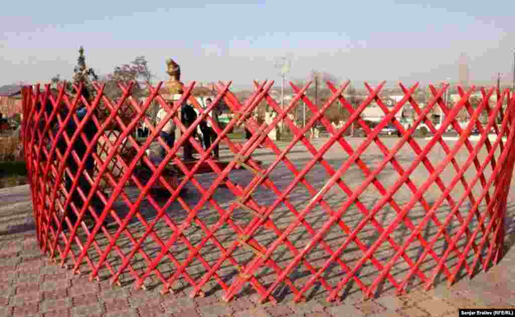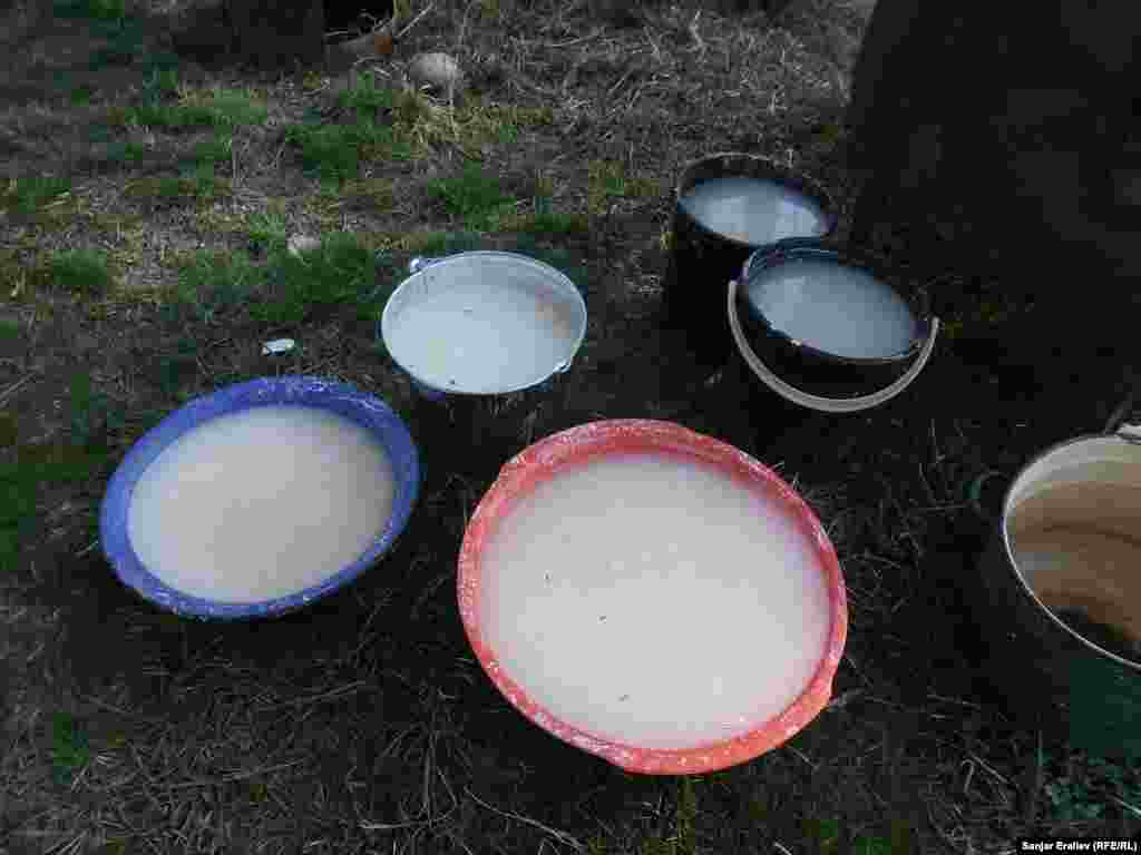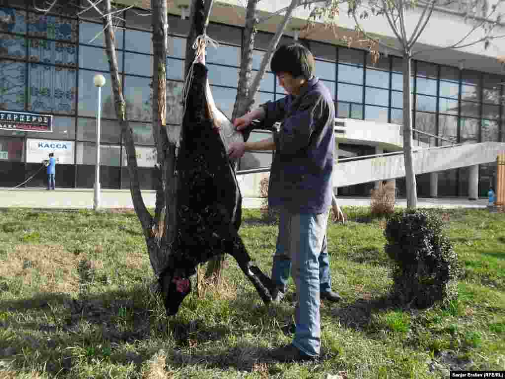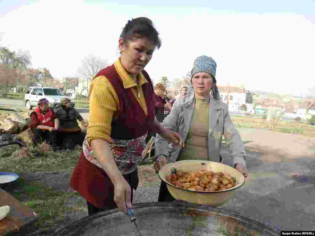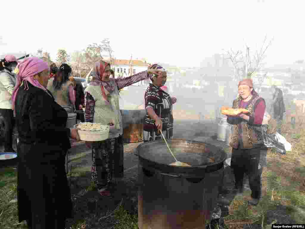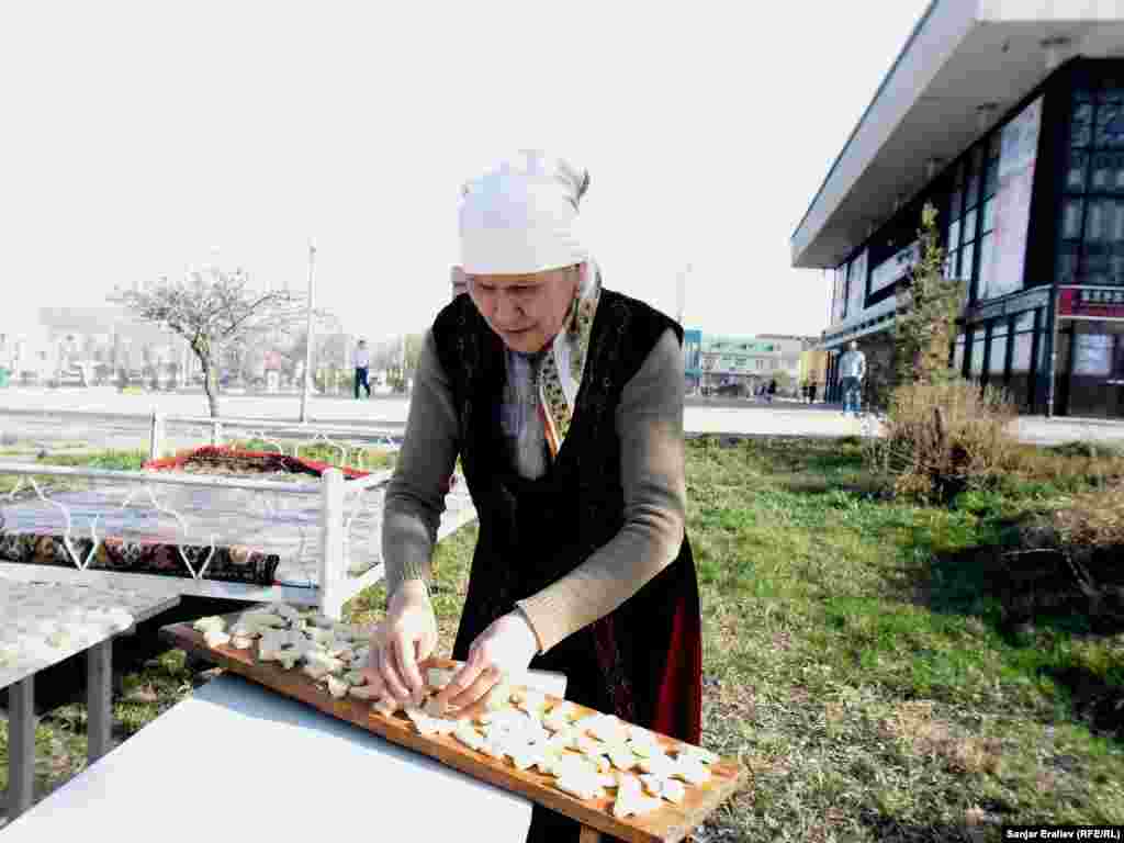 В самом центре Оша, на площадке у Кыргызского национального драматического театра имени Ибраимова городские власти организовали праздничные гулянья и приготовление праздничного блюда "сумолек". "Азаттык", Кыргызская служба РСЕ\РС